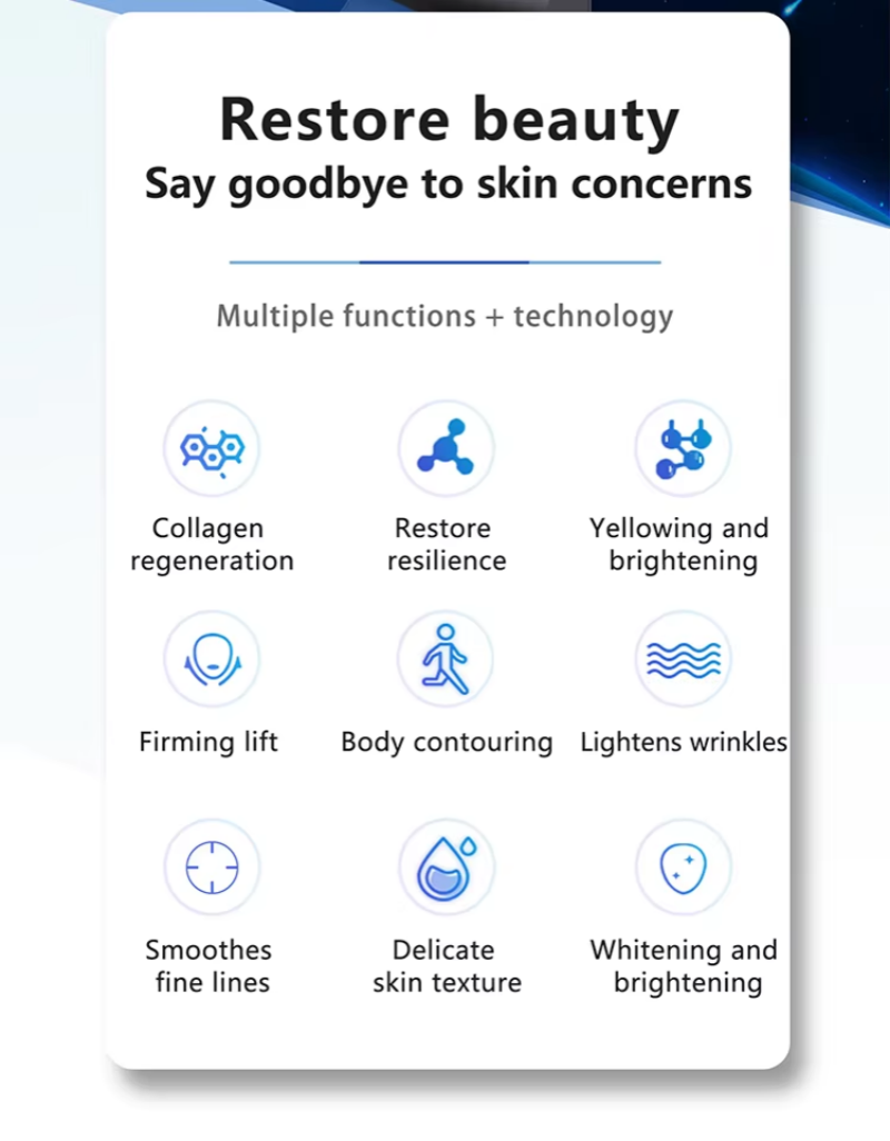 4.12 probes with different depths can achieve multi-dimensional anti-aging and lifting results as well as fat burning, since it can achieve the effect of burning the fat cell of your chin,arms, thighs and abdomen with its deep probes.